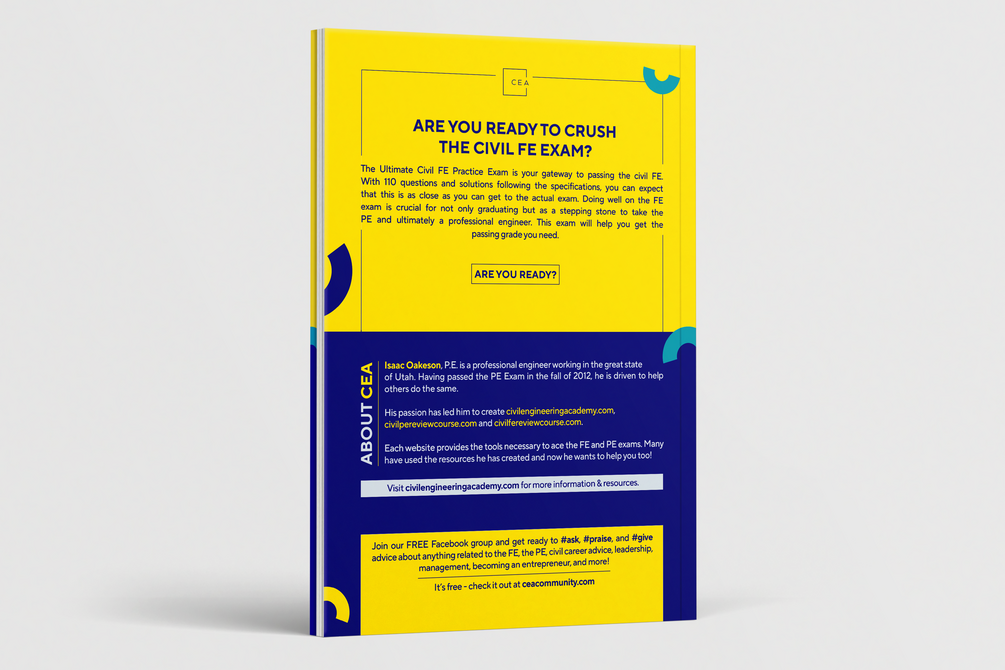 The Ultimate Civil FE Practice Exam Vol. 2 is the second practice exam we have developed for the FE exam. If you took one near the beginning of your studies then why not one near the end? Practicing problems is key which is why we made a second edition.